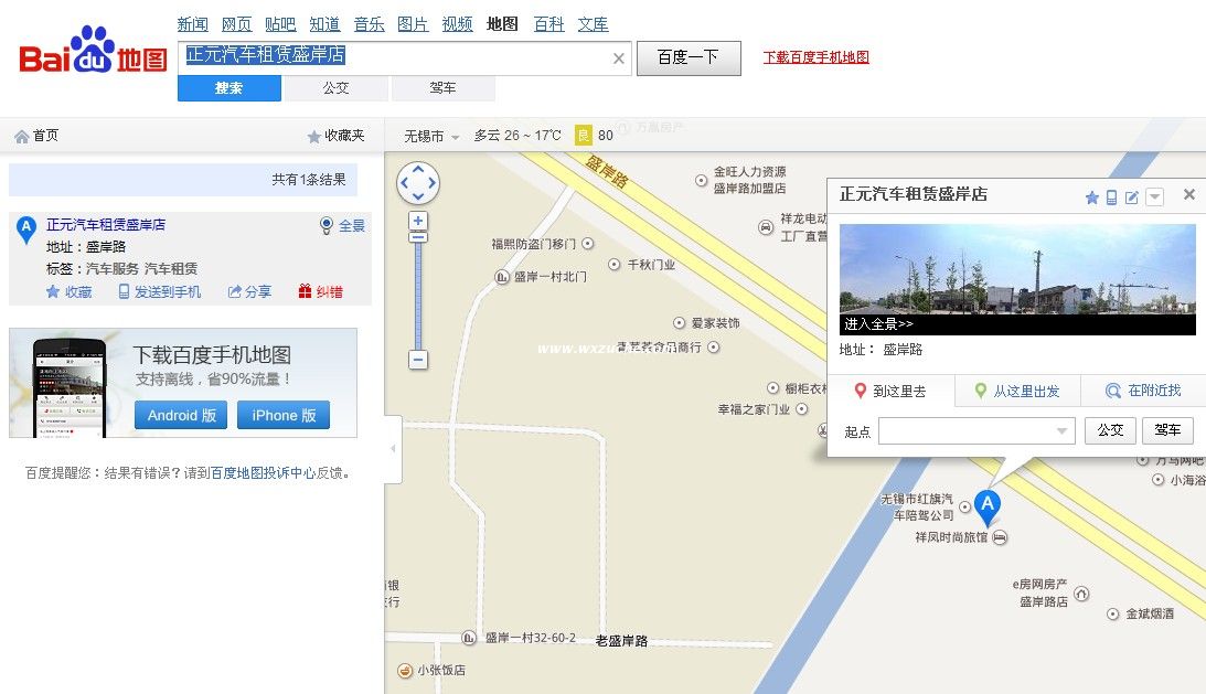 祝賀正元汽車租賃盛岸店進百度實景地圖